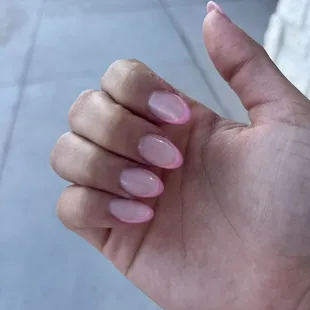 basic mani, nude base pink frenchie around $70