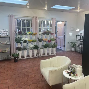 big and open space with a big selection of beautiful flowers and has lots of treats for dogs. The owner is really respectful and on saturday, the person who brings the customers in is really nice and is really convincing to come into the shop. The flowers are alive and not dead, and also has drink.