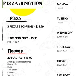 This place used to be on Montana; this is their new location. We ordered our usual pizza and flautas and they are just as delicious as before. This new location is a pickup only; there are no tables for a sit down meal. The menu is the same as before and so are the prices. The only downside is that this location is right on Zaragoza where the speed limit is 60 mph and visibility is bad. Other than that, I'm happy that they didn't go out of business.