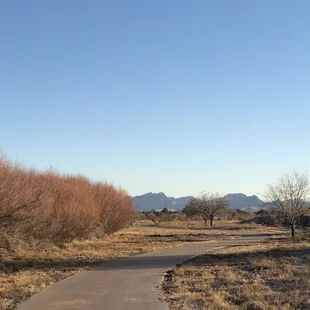 Very safe and nice area to walk along Rio Grande. Concrete walkway. . No place for parking so I parked in a shopping area parking lot. Mostly bicycles from neighboring areas and people walking their dogs. River was dry (January). Nice views of mountains in background. Gets chilly fast after sunset.