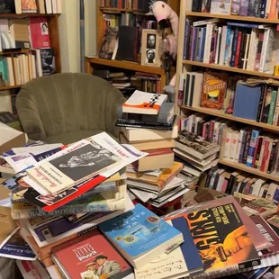 The energy of this used bookstore is similar to that which one may expect to see in a movie. Books were chaotically piled high on top another in addition to those on the shelves, leaving just enough room to squirm between aisles. It may be due to a recent move, but I'm not sure. The owner, who sat in the corner of his store surrounded by a cylindrical mountain of books, quickly greeted us and pointed us toward the sections we may be interested in. The store is quaint yet chaotic and the owner was helpful but quirky. The prices ranged from what I felt was fair to what felt pretty high, seemingly based on the age of the book (with older books having higher prices).I'd certainly stop in again, but I can see how the chaos of the store could be too much for some.