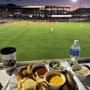 Love coming here to see the baseball games. There is literally not a bad seat in the house. I've sat almost every where. Tonight I sat in the dugout club which for $38 is a great deal. I could easily see the entire game and we had a waitress through the whole game. The food is typical baseball game food and the drinks are similar. A lot of their food comes with souvenir cups or bowls so it makes the price worth it.
