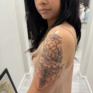 Sarah did a fantastic job on my husband's tattoo! Beautiful line work and shading. She's a great artist to go to for a first tattoo, makes clients feel very comfortable and listens to them.
