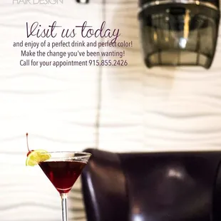 You get complementary drinks, they are very nice and well try their best to do what you ask them. They work on curly hair too which is a plus for me!
