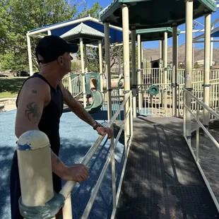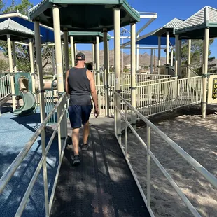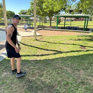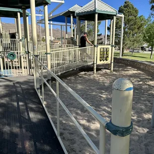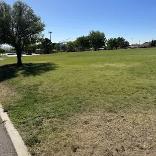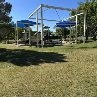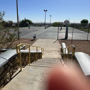 Nice little park. Playground, basketball & tennis courts...no bathroom :( sidewalk goes around the park (incline/decline)....quiet neighborhood.