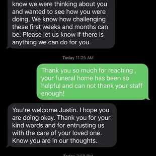 I can not say how compassionate this funeralHome is !! I am not from El Paso however, I moved my mother here 5 years ago when I lived here. Even after I paid and my mother is in NJ they still reached out ! Thank you from the bottom of my heart !