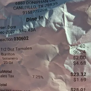 My brother in law always brings us menudo and chicharrones from Lupita's Tamales but this is the first time I've gone there. I've always been intimidated by the lack of parking and the long lines. Today I was heading back with hubby's car from the auto body shop in Canutillo and I saw there wasn't a wait at 10:00 a.m. I found parking in front and was surprised that the seating was outside. It makes sense once you get inside because every square inch is covered in sodas and goodies. Chicharrones piled up in the display cases, trotters, tamales, bunuelos, etc. The Mexican Cokes were the big ones 500ml from Mexico and only $2.60 each, the smaller normal size was $2, so no brainier to get the big ones.There were helpers that spoke English and they take credit cards, so even though the food is super traditional and it looks like a hole in the wall, don't be fooled..this is a well run modern operation. I got a half dozen because it was cheaper at $1.67/each than getting an individual one at $1.75/each. It's a wash after that, but people seemed to order a dozen at a time. The prices came out to be higher though than advertised with my tamales at $10.40 and that's before they added the tax. It's not much but it's a pet peeve when the prices aren't what's advertised. I'm not sure if that's a credit card fee because it seemed like the cash price as well. In any, case, I got half a dozen with 2 each of the Rojo w/Puerco, Verde w/Pollo, and Chile w/Queso. I also got 2 burritos at $3 a pop (barbacoa and chicharrones), 1 lb of chicharrone nubs, and 2 large Mexican Cokes came out to be after taxes $25.01. Not bad for a lot of food. The trio of which I shall now dub the Three Kings, because they were bursting with meat in the middle, was warm and moist. The Chile one spilled over so it looked like it was hollow, but trust me, it overflowed the edges and got messy. I don't know what the reviews are saying about the meat to masa ratio being small because definitely isn't. The only thing I would fault them for is not having a lot of flavor, it was sort of bland. I don't know. I only eat pasteles for Christmas and they eat it with ketchup. Am I supposed to have salsa on the tamales?The barbacoa was greasy. I think Los Primos is still my favorite barbacoa and it's down the street. The chicharron burrito was exceptionally good, one of the best flavored ones I've had, and honestly that's all I really eat when I order burritos here in El Paso so I've eaten a lot.Definitely go try it and enjoy a local legend and favorite. There's a whole lot of love, labor, and lard in each tamal. I really appreciate that I can get them easily all year round because of their hard work. Go out and support local!Tamales Lupita(915) 877-22086860 Doniphan Dr B, Canutillo, TX 79835https://maps.app.goo.gl/xnnBvZQuytFW6sJi9