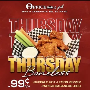 A great atmosphere, a great little secret, with a great staff that's on top of their game by keeping you up to date with all on going events, drink specials, food specials, as well as future events !!! You are taken care of and kept involved throughout your visit at The Office Bar. With great specials daily beginning with Banda Monday's, Taco Tuesday's, Alita Wednesdays $.99, Thursday's Boneless $.99(Buffalo Hot, Lemon Pepper, Mango Habanero, BBQ), Friday Fuel Party with DJ Luis Cancino as well as a Saturday Party, Champagne Sunday's (Mimosas $2.00, Mimosa Tower $30.00)Some daily specials are $2.50 Tecates, $2.50 Trulys, $2.50 Domestic, $4.00 Don Julio Blanco, $3.00 Fireball Rumpz and Jagger until 7. The Office Burger with fries is available for $6.99 daily. Come see the friendly bartenders and waitresses Bee, Sofia, Jaz, Val, Precious, Cori, and Fernanda for great service !!!