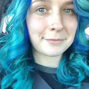 Andrea did such a wonderful coloring of my hair, even with a last-minute appointment. A friend of mine did a color melt on my hair on August 4, and I hadn't colored or cut my hair since then! Andrea cut my hair on Dec 24th and colored on Dec 26th. I was SO nervous to see someone outside of my regular stylist, but she lives in Mississippi! I just couldn't wait any longer, and I am so glad I didn't! Look at that blue lagoon!!! I will most certainly be back