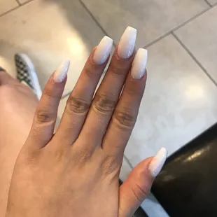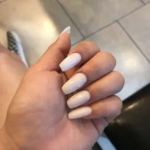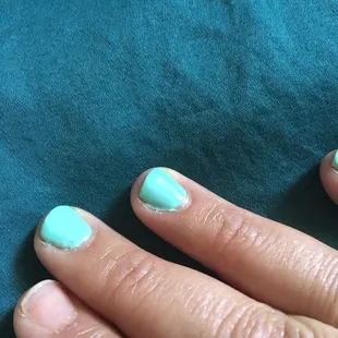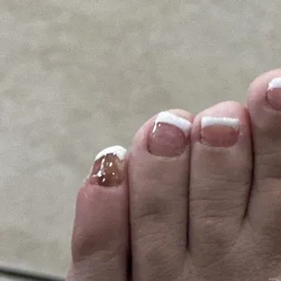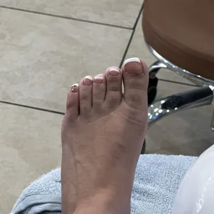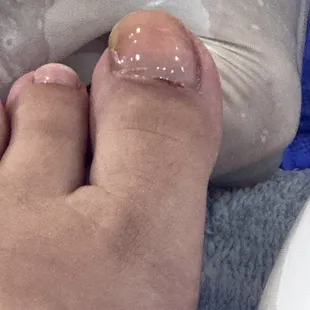 This cost me $77. The man doing my pedicure rushed it, cut ALL my cuticles on my left foot, did not cut my nails at all just filed them down. There is no base color used for the French tip.