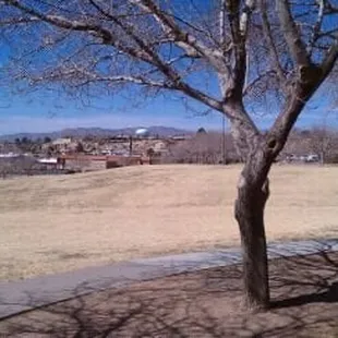 Great park with many large shady trees perfect for a picnic and a peaceful time -out. Lots of hills provide some nice views of the city's scape. Parking in a lot or along street. There is a porta potty in parking lot so that helps when times are desperateInteresting artistic feature is a tulip or rose large seating structure made out of old radio flyer wagons with 3 benches great for practice for an acappella group. Also Instagram worthy. Park has walking trails around trees. Don't get to excited non-elpasoans it is not woodesy. Also a great kite flying park