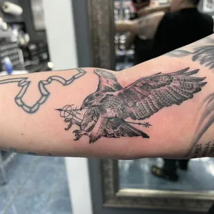 I went to Eli the first time for a small rose tattoo and semicolon though it was pricey I thought he did a good job. With the experience I had with him the first time I figured I'd go back again. A few months later my uncle passed a way and I wanted a memorial of him done on my foot I figured I'd go back to him. When I got in contact with him via messages he seemed really open to the idea of what I wanted and asked for a deposit. The next day I went to my appointment with him. When I got there, he seemed to be ready to listen to what I wanted. As he had me go back to his station he began to draw what was not what I had shown, I asked about doing it that way and he said he didn't want to do it like that. This wasn't the bad part....as he was working I noticed lines that were not straight and a bunch of dark shading, so bad that he couldn't even put the full last name like I had asked. After a few hours, he stopped and told me to come back so he could finish even though I paid for the full tattoo. (mind you this was back in November.) through out the weeks, I would message him asking when it would be a good time to come back so he could finish and he'd just say not yet. After waiting months and embarrassed about how the tattoo looked I decided I would not go back ever again. Please do your research and don't just assume from the reviews.