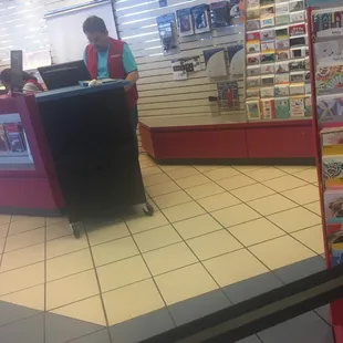 I love this location because of the drive through drop off boxes. It does have set hours that are open later than most but it should be known that they do have boxes out side so if you're ready to go, come by. The inside is also open 24 hours so you could technically get things done with the kiosk. They have mailboxes so that is why the other part stays open after regular business hours.