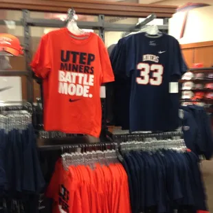 Good old, trusty UTEP Bookstore. Much more reasonable than I had ever imagined and twenty times more convenient than any other nearby spot that carries pencils, pens, shirts, paper, hats, stadium chairs (you know the ones you put down on the hard stadium benches so you can sit comfortably for the next 2-4 hours), and more.I do feel like there should be another little bookstore outlet somewhere else on campus because this isn't really in the heart of UTEP where one might expect to find a place carrying all of the school-life necessities one may need. Buuuut... the Bookstore is large enough to carry all of my needs.I've purchased and rented all of my books through the Bookstore because after spending a lot of time comparing prices, they offered the best prices. The only book I've ever bought here that made me blurt out "Are you effing kidding me?!" was a math book that was written by UTEP so obviously only available at UTEP (although I will say this book wasn't all that bad, the fact that I can watch a video of every single problem being solved and link up with a tutor is kind of a win-win). I like to have a physical copy of books, but their online book prices are even better.I've also bought other random things here like pencils, scantrons, highlighters, folders and notebooks. They offer your normal school supplies, but they also have a lot of UTEP branded supplies like laptop cases, chargers, pens... really just anything that you can fit the word UTEP on.I'm a big fan of athletic gear because it's just hella comfy and I also like to rep my school so I was surprised to find that they actually have really good quality items (like UTEP branded Nike gear) and amazing prices. I've seen some pretty simple shirts at stores around the city that are easily $30, but you can get those same shirts at the Bookstore for $12. Mind blown.Lines can get long, especially at the beginning of the year when everyone's picking up books and scantrons. Buy your scantrons in advance. But the lines move quickly and they always have enough staff on hand which is a huge plus.