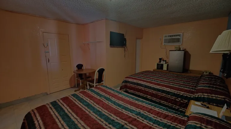 This wonderful motel met my requirement of a ground floor room, essential because my "FrankenBike" [compatible components from my formerly ultra-light fantastic CruzBikes (S40 handlebars + T50E framese)/waxed chains from my beloved Doublevision + brake calipers/headset cannibalized from my most favorite/#1 daughter's ATB + eBikeKit.com heavy duty 48V direct drive eSystem] is now too heavy for my "aged out" body to move up- or down-stair. Room 12 was exceptionally clean and I had little difficulty situating my machine inside, easily plugging in the chargers for the 4-6 hour recharge using a 12-gauge extension cord (inherited from my now-deceased parents, who plugged in the engine block heater for their diesel Toronado in the 1980s) with a triple plug for the 20A eBatteries. I was quite delighted to find ample clean ice in the dusty machine, though that was tempered by my needing to Gimpwalk a ways East along the main road to buy my microwaveable meal at Walgreens.This is an excellent budget motel, and certainly has my coveted "¡Wheel of Approval!"