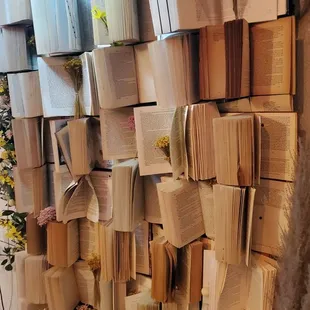 a wall of books stacked on top of each other