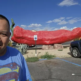 Visited June 1, 2023. Very cool roadside attraction. It is a BIG Chili Pepper. 47-foot-long red chili pepper made of 2.5 tons of concrete. In a motel parking lot (Big Chile Inn). Selfie worthy.