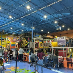This place is great for kids 2-5, which seems to be what they were going for. We tested it out yesterday with the family and the kids really liked it. The toddler area is great, especially the slide that goes into the ball pit. My toddler loved was having a blast. My four year old enjoyed just about everything. It's not too big of a place, but it's definitely entertaining for the kids for an hour. They have snacks inside and drinks (alcohol included) for purchase. They have 2 private rooms for birthday parties and some open areas for seating in different parts. Friday afternoon wasn't too crowded, but I imagine it can get crowded here.