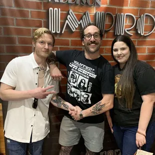 The viral podcast... LIVE! I came here for 2 back to back shows with a VIP meet and greet in between The night was amazing! The drinks were good. I was feeling it the 1st show since that's all I ordered with my 2 item minimum purchase. Old fashioned and TX tea. 2nd show I had nachos and water. On the way home... Back on the train... The shrimps were singing! I get 1 maybe 2 upset stomachs a year if that. Took awhile to get home to fort worth, but I made it there with the malt sickies. Took an Alka seltzer before bed and I was OK the next day, but I blame the nachos.
