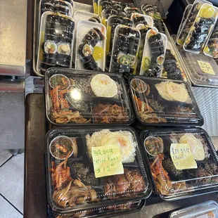 Great spot for . The kimbap is packed up and ready to go by the cashier for those looking for a quick meal on the go. Otherwise, there's a larger menu for things that can be prepared. My mom, sister, and I decided to dine in, but a lot of people came in for takeout.We got two things of kimbap, a tteokbokki, and fried dumplings. We also ordered a side of fish cake soup, not knowing that a little bit of it comes with the tteokbokki, but it was good that we got it, because it stayed warm longer (it was a larger portion).You order at the counter and pick up your own food when it's ready, and then bus the table when you're done. The cashier wasn't the friendliest to me, a noob who took longer than she wanted to order, but she was super busy trying to juggle everything so no hard feelings.I would definitely go back for a quick meal.