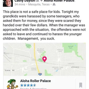 Aloha roller skates in mesquite texas ruined my 5 year old daughters birthday party. By the end of the party, she was crying about how this was the worst birthday ever. The host was amazing but spread thinner than a sheet of paper between all the parties (5) The manager working the desk clearly isn't knowledgeable enough to do her job. I run a 1.5 million dollar business as a general manager and i know It is her responsibility being the MOD to make sure she has the inventory and supplies to provide for the guests she is servicing. For my 300.00 party, we used 2 of the slips for skates out of 20. There were not enough skates for my guests. I was told I could get 100 bucks back but wouldn't get the 4 large pizzas I was supposed to receive. Even for the 150 package, you were to get 2 large pizzas, and we received none. This was my child's dream party to go skating for the 1st time. I believe you owe her a redo, even if it's a free ticket for admission for only her. Aloha, you really dropped the ball and my child deserves better than what she received.