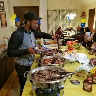 We had Ash cater an event for us recently and I have to say that it was a true success.. The food was AMAZING and everybody that ate it had nothing but good things to say about it. I ordered the brisket and chicken and both of them were very delicious.. I ordered the cream of corn and potato salad and they were very tasty. We ordered for 35 people and there was NOTHING left at the end of the night. He came in, set up everything, made sure food stayed warm, and at the end of the night, cleaned up and I was very impressed in the way he handled the whole process. I would highly recommend him to anyone and will definitely order from him again!! 100% satisfied!!!