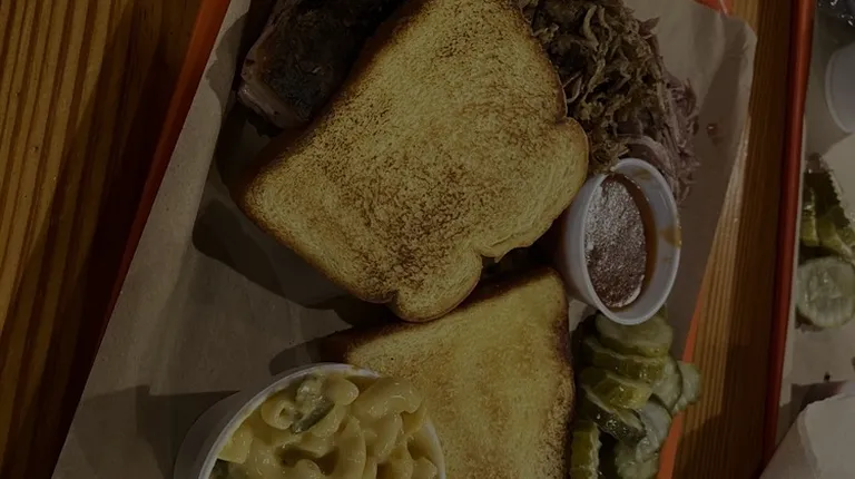 I ordered a 3-meat plate to go with brisket, chicken, and sausage, with green beans and jalepeno Mac n cheese. The food was really good, and so was the service, which is why I'm a bit torn on this review. When I got home, I had a 2-meat plate - missing chicken. So I'm not sure if I paid for a 3-meat and got a 2-meat or what.Easy parking, and lots of sitting room. I'll have to go back and try again.