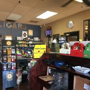 Really nice place if you enjoy cigars! I have drive around this location. But for some reason it never interested me to wonder. After having a character build day and since is the closest shop where I was why not walking in. From the outside doesn't look inspiring and much less appealing. But don't set judgment so quick. Once you you pass those doors you can find more than what you need. Not just a quality selection of cigar at great prices. Also humidors cases, pipes, tabaco, lighter every size I mean you name it. The humidor is pretty big. And I'm pretty sure they have almost any maker out there available. Plus the smoking area is very comfortable with a table area, TVs and cable. Also wifi for your convenience. You can also bring alcohol and food. There's also a bar the you can use. The bar has a fridge, free ice and glasses for customers which I think is very helpful. I'm not sure but I think I saw some lockers. Idk maybe for membership or something. Staff is ver friendly and welcoming. Open to guide you to select a cigar that can excel your experience. I really like the place and really recommend it.