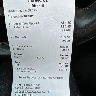 Torta de asada was good 8/10 tacos were good as well 7.9/10- service was 10/10- will go back