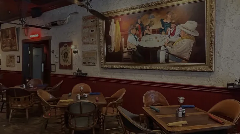 Alright so, Booger Red's is "named in honor of the legendary Texas bronc-busting champion Samuel Thomas Privett (1858-1926)." But I still don't know WHY it's called "Booger Red's" specifically.. I guess that was Samuel TP's nickname? But why? Let me go google... Okay I'm back and I sort of regret looking further into this. The story of Booger Red is tragic! What the heck... So Sammy TP was called Red since he was a child because he had red hair. Got that half of his nickname out of the way. He was the greatest "bronco breaker" (poor wild horses) of all time and he's credited with originating the modern day rodeo (ugh not a fan) -- anyway, he advertised himself thusly: "Come and see him ride, the ugliest man dead or alive, Booger Red!" Why was he so ugly, you ask? Because as children of confederate soldiers often did, 12 year old Sammy and his bff were playing with gunpowder on Christmas Day, stuffing a dead tree with it to make fireworks. Sadly the gunpowder exploded early, throwing Sammy 20 feet through the air and killing his poor friend! Sammy lived, but he was gravely injured in the explosion. Legend has it (honestly I've no idea how accurate this story is, so legend has it) that a neighbor kid saw Sammy being carried to the hospital, took one look at his mutilated little face and cried out, "gee, but Red sure is boogered up now!" And apparently "boogered" is an adjective meaning crippled, maimed, or disfigured. Who knew? So poor Sammy was blind in the hospital for six months and while he fully recovered, he was very very disfigured. He basically had no more eyes, nose, or mouth, just little holes.... He was described as looking like "a pumpkin with bullet holes for eyes." So sad! Why did this have to happen?!Anyway, Sammy's family would tease him and call him "Booger Red" after that one rude neighbor kid started it.. I guess the nickname made Sammy laugh, so there you have it. This saloon is named after him! He never stopped breaking broncos and went on to become super famous for it.Booger Red's is right between H3 Ranch and The Stockyards Hotel. It's a long and narrow saloon lined with an enormous bar and giant stools, and some of the stools are saddles. Fun. This saloon is probably the most classic looking and feeling "Wild West saloon" in the stockyards district. It's thoroughly decked out in all things cowboy from the floors to the wall-mounted animals to the paintings of dance hall girls to the vintage pulley fan system lazily circulating air far above your hat hook.Behind the bar is an enormous mounted buffalo butt... lucky for you I'll give you the short story this time: the Hunter brothers (restaurant next door) hunted buffalo and said the only thing that got them through those long hot days of looking at buffalo butts was an ice cold beer. And that's that! Booger Red's is famous for its Buffalo Butt Beer which is crafted in small batches and always served in a bottle, in an ice bucket. You gotta try it at least once. And of course you can order food from H3 Ranch's menu; ribs, steaks, nachos, spit-roasted pig, fried catfish, lots more. It's fun here. It feels like you're on a the set of a western, so just lean into it and spend some time bar-side with your boots up.