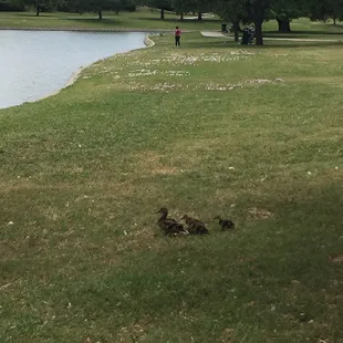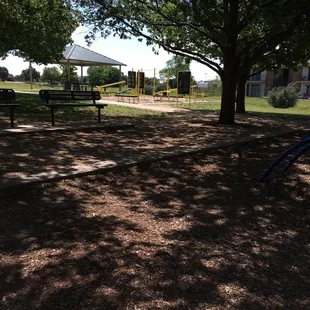 it's a beautiful park. it's nice to walk the trail. there's a small workout section next to the playground. and there's a beautiful pond.there's tons of ducks, turtles, geese, squirrels and trees for shade.i go there quite often, i bring people with me who have never been there and they love it.