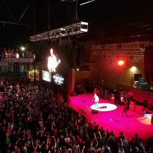 Great sound quality and viewing space! You can get right up by the stage or pre-order a table! Plus they have 2x jumbo screens on each side of the stage for more visibility!