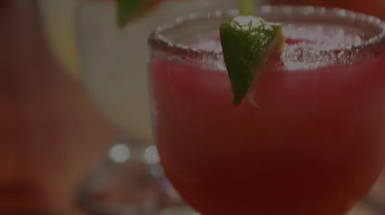 Sangria swirl margarita, draft Modelo, green Chile pork nachos
