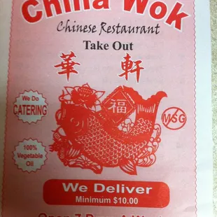 a menu for a chinese restaurant