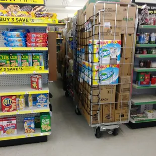 This location is the worst! The aisles were filled with stuff to stock the shelves and I could barely get to the items I needed. It's a true mess and needs a makeover in the worst way. I guess the company just does not care about this location or they would do something to fix it.