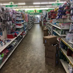 I was here yesterday, 07.03.2015 and this is the worst Dollar Tree I have ever been in by far! Walking in, there was a line of customers all the way back into mid isle with only one register open. There were several other employees there, I'll say about 5 or 6. All gathered together at the register closest to the managers office smiling and laughing with each other. The only guy checking people out was extremely kind and very nice. No acknowledgement from any of the others not even the manager. The store itself was extremely unkept, very dirty with merchandise and trash strewn all over the floor around the entire store. And no, they were not in the middle of stalking the shelves. I was appalled by the operation of this particular store. I have never been in one this bad. Someone needs new management! I was in so much shock I completely forgot to check in on yelp but I have included a copy of my receipt.