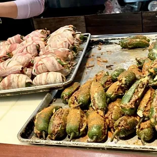 a tray of meat and vegetables