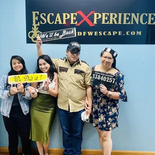 Great experience, the staff was so friendly we were paired with two other small groups totaling 8. Our theme was to escape our jail cells and prision.The only downside was one of the small group families really didn't participate so they ended up leaving the room midway. Nonetheless even without the extra 3 people we did eventually solve the puzzle and escape with 3 minutes left