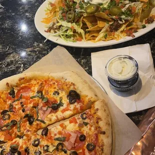 Kids pizza (came with a. Free drink too) and the fried pickles and jalapeños.