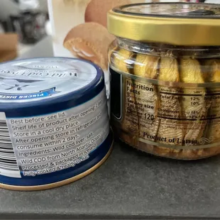 Hazelnut Cookies from Poland, smoked sprats in oil from Latvia, cod liver in oil from Iceland