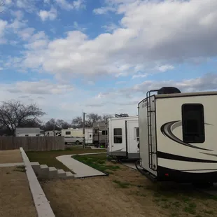 Wonderful park, level concrete pads, very quiet and clean. The couple who run the place go above and beyond, wife responded to after hours text about internet and husband helped us with a tire issue, in temps of over 100 degrees, just because they are kind people. Lyft ride to stockyards was only about $20, and rides were easy to get . We felt safe and secure in this location, peaceful country setting but close enough to all the attractions Fort Worth has to offer. So glad we found this little gem and would return in a heartbeat.