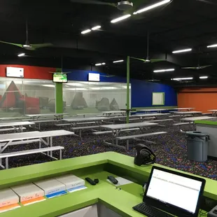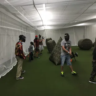 My younger kids had been looking to try paintball and since it was my oldest son's birthday, we decided to have it there. I brought some of his friends as well. There was a special going on where if you prepaid for a Saturday you could get equipment and 100 paintballs for $20 per person. I can tell you that 100 paintballs isn't going to get you very far so be prepared to buy some if you want to play more than two games. This is where they get you. You can only use their paintballs. The largest amount they have is a box of 2000 for $87 plus tax. I got that and eight of us played for about two hours. The field is a bit smaller than I was expecting but we still had fun. Because of the small size, you are going to get hit....a lot. Be prepared because it stings pretty good. Make sure little ones are extra padded. My nine year old daughter got hit twice and cried both times. You can rent camo outfits and vests to wear. My son said that is for the wimpy. There are several game scenarios that they will do at random. There is elimination which is standard. There is one called hot potato where you have to keep the ball off of your half of the field and there are some capture the flag type scenarios.The staff was really nice and we didn't have any real problems. Only annoying thing is some kids would come and take stuff from our table.Some tips for you:1) Bring lots of water. There are no water fountains and you will sweat. You can buy water there.2) If you are wimpy, make sure you wear extra padding (which will make you sweat more, so bring even more water!)3) Wear good shoes. With all the paintballs that collect on the floor is gets slippery in there. You are more than likely going to fall as some point. Limit it with shoes that have good traction.