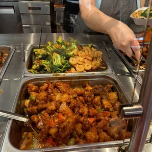 One of the things I enjoy about working in a new area is trying new places to eat. It was one of those Explorations that led me today to Grand Wok.The Great Wok is a place where you can get quick food already prepared by going down a cafeteria style mine and picking your entrees. Their prices are fairly reasonable you get fried rice or lo mein along with one entree for $5.50 or two entrees for $6.50 or three entrees for $7.95. They have a fairly decent selection of freshly prepared foods and I'm cold enough staff to serve you quickly.For my first visit today I got the sesame chicken with lo mein as well as the broccoli shrimp. Both dishes you were very good but I do believe that I preferred the sesame chicken. The broccoli shrimp was good but it was a little over cooked and the shrimp were a little rubbery. The sesame shrimp is prepared nicely and remade crispy even with the sauce that it was in.I certainly will look forward to coming back and trying some of their additional dishes.