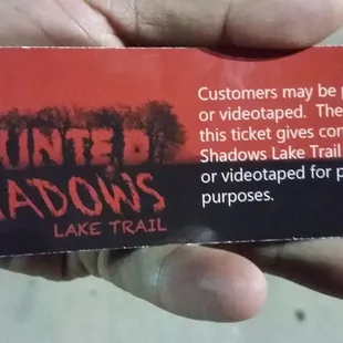 This "haunted house" is actually a tail through the shrub-land along Lake Lewisville. Parking for this venue is located at the Blue Sky Soccer Complex, which is also where you pay the $20 admission fee. They will also guide you to where the trail entrance is. Be sure to wear proper foot attire, and if you are easily spooked, I would suggest bring a flashlight. They do provide you with a flashlight upon entry, but it is pretty dark out there. That was actually the scariest part of the walk - the darkness. There are a few "actors" who are dressed up and jump out of the woods or follow you and your group around, but no one is very scary. There are a few structures you have to walk though, and that was pretty fun. There is one structure at the end that I can only describe as what it must feel like to walk through a fleshlight. No, that is not a typo. We went here the weekend before Halloween and waited in line to get in for too long. An employee at the front lets in groups one at a time and issues your group's flashlight. I'm not sure if this haunt was short-staffed the night I went or if everyone was on a break, but there weren't many actors jumping out of the bushes. It was more of a night nature walk. I was on the look-out for alligators rather than spooks. For $20, and a long-ass drive out to the sticks, I expected a bit more. If you want to drive far away for a real scare, there are much better places to go.