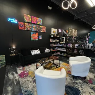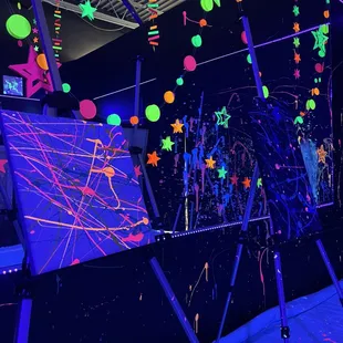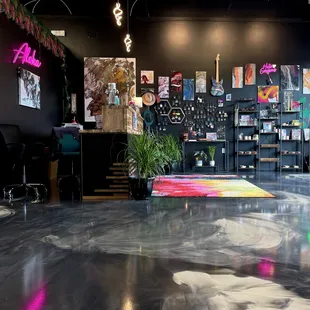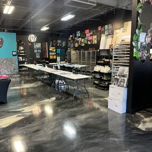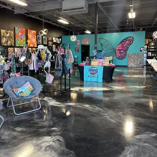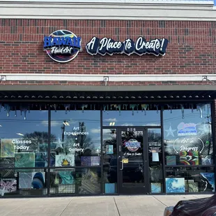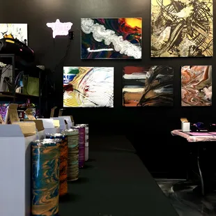 I had mommy/daughter day here for spring break and we had a great time. I initially spoke with Dawn, the owner, in regards to hosting a birthday party for myself but my plans changed. But we had such a great conversation that I thought I'd still come to this location and support her business. She was very informative on the paints and types of designs we could do and she took her time with us. We definitely had a great time yesterday and will certainly be back to do this again again. Attached are our fluid paintings we made. We can't wait to pick them up and hang them on our walls. My daughter also got a hat with some patch work put on it too.
