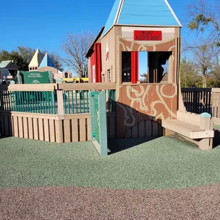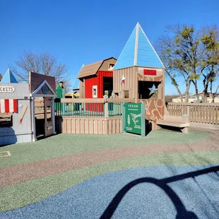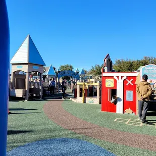 Huge playground with lots of things to keep your kiddo busy. We did see several things broken though like the various piano/bell areas. Also a lot of brats going the wrong direction on the slides and of course their parents doing nothing about it.There is an ice cream truck that goes seemingly during peak times with gouged prices. One bar that's like 5x the $$$ amount if we bought it at grocery store. If he's allowed to gouge like that, let's review policy with Frisco Parks and Recreation please and not allow this to happen.Restrooms are available which is nice.There was a weekend we went when they had a religious booth set up at the entrance of the park distributing flyers? In general, I do not want ANY booths there. Please address that moving forward. We don't need to force idealogies on our children.