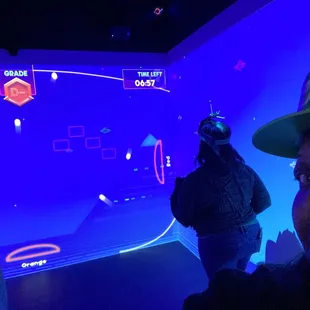 A seriously fun fun fun time! This is a gaming experience I suggest for all! Family friends, date night, or just to try something different... it is so worth it!This is a totally immersive experience. You are put in a room and told to wear this funny visor hat to play. The room is your game screen and your body is the controller. 3 walls of the room, from floor to ceiling, are the screens. You move forward, back, left and right to manipulate your avatar, and at times you touch the walls to activate things. Seriously this is not only fun it is a work out. My son and I were jumping sliding back and forth and twisting to make things click.Is was a full of riot! I don't think I have had this much fun in a game ever! I first tried it with my oldest, then I went back with both my boys. There are 4 hats in a room so I think up to 4 can play at a time. The rooms are good sized but I could see how more then 4 could have you stumbling over each other.They do offer some drink and snack options as you are playing. Just tap the menu and you can order stuff that they bring to you. The first time my oldest and I needed drinks we were sweating so much!The cost is reasonable and each selection takes an hour of time. They have puzzle like games, even a version of squid games, and now a ghost busters game I want to try... that will challenge not only your body, but your mind as well. We have been back several times now... and have had a ton of fun each time! I highly suggest trying this out... you will be so very glad you did!