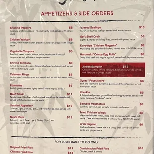 Sushi menu