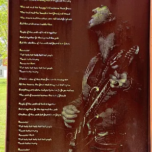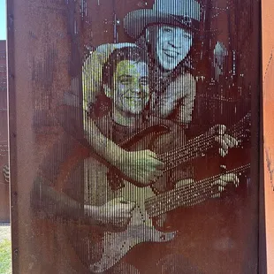 Metal is cut to give image of Stevie playing with lyrics to Tic Toc from Family Style also cut into plate steel