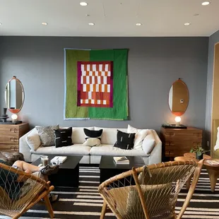 Comfortable seating in the penthouse living room creates residential vibes.